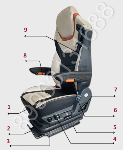 Имеется функция выдвижения подушки по горизонтали ! Дополнительно можно установить: вакуумный воздушный фильтр высокого давления, поворотная станина для сиденья, преобразователь напряжения 24V-12V Фото крепления с размерами и размеры сиденья смотрите внизу во вкладках.